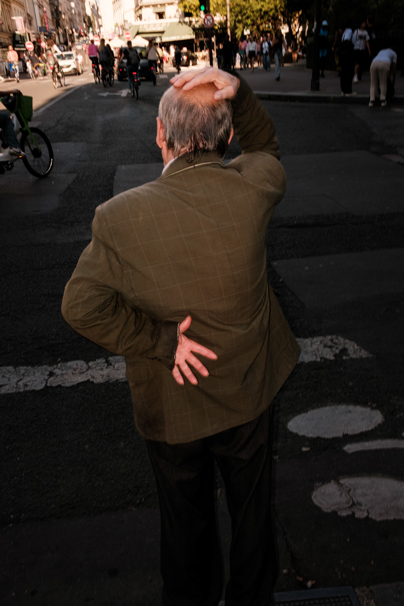 This series focuses on the geometric choreography of everyday movement. Twisted bodies and fragmented gestures become the main subject. A way to explore the tension, the waiting, the fatigue in urban spaces.